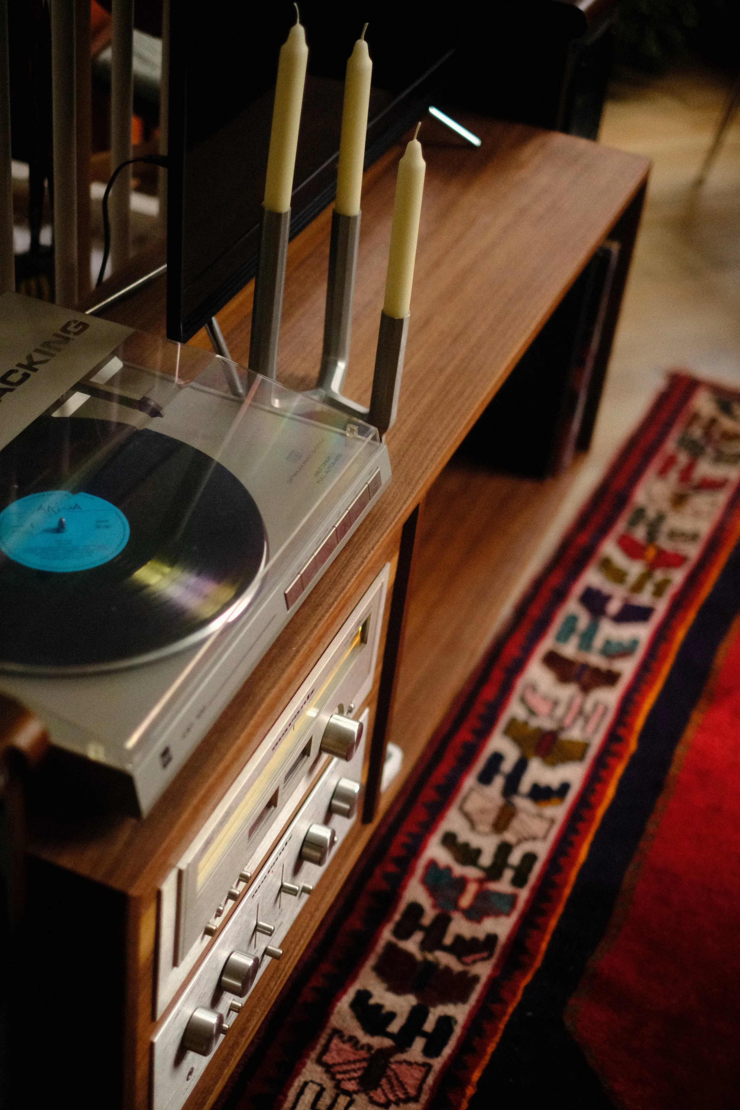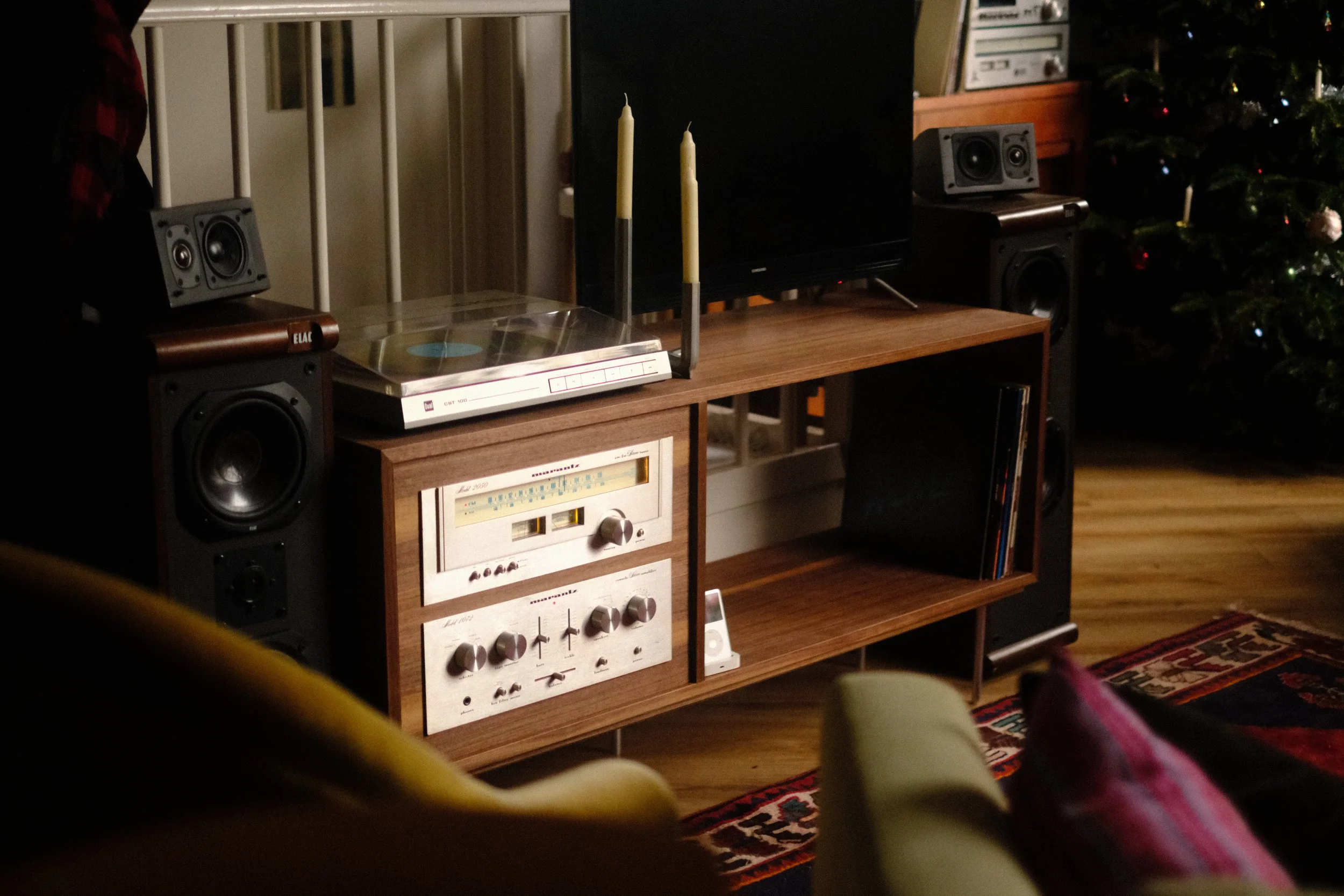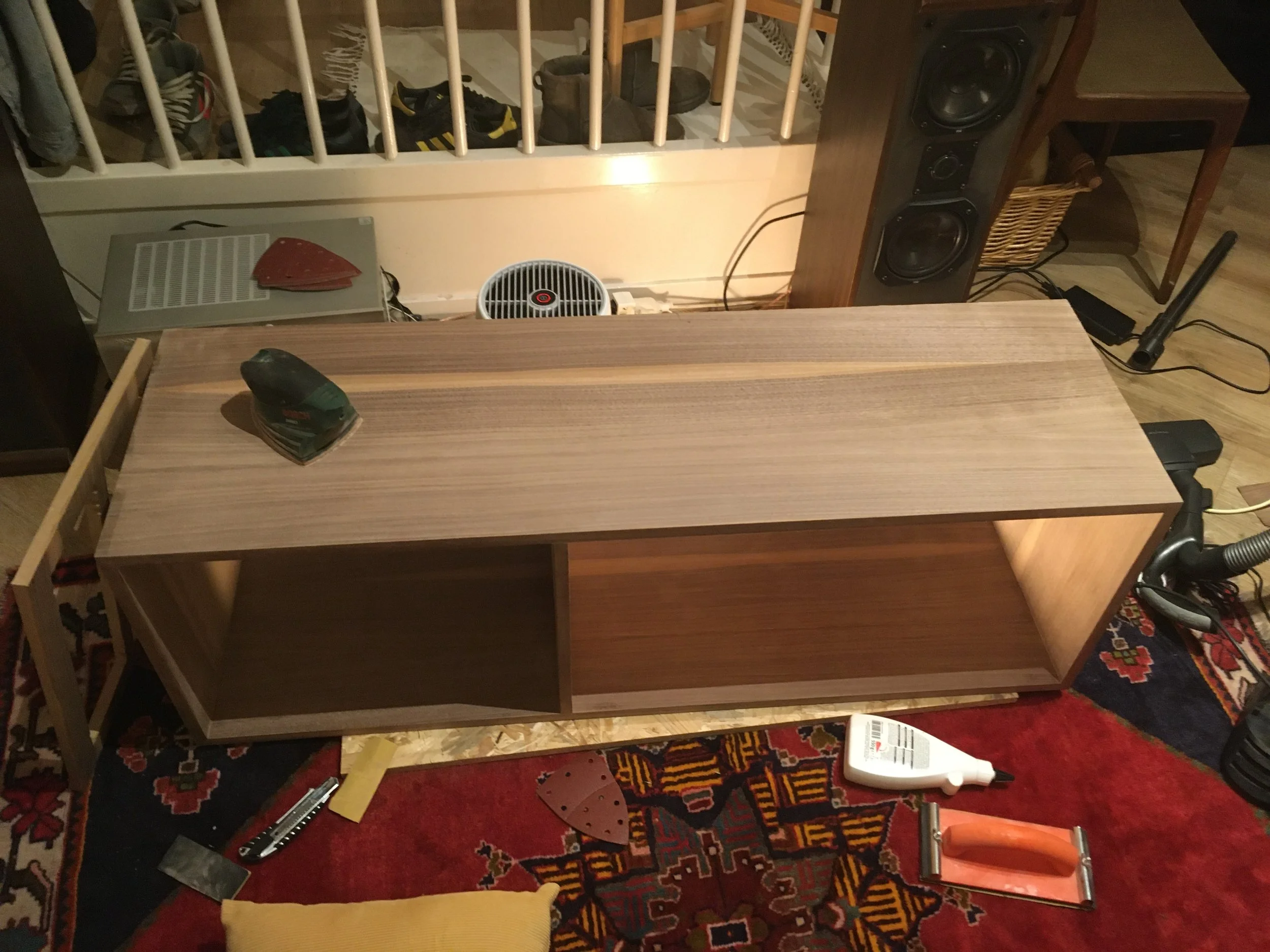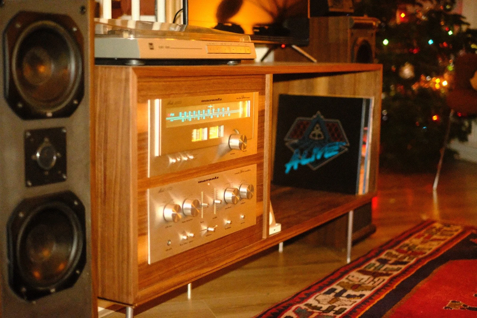 Personal carpentry project: 70s inspired piece of furniture that combines love of audio equipment with walnut and mahogany furniture of the time.